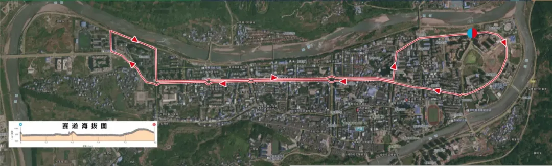 本场比赛赛程80公里,比赛起点从石材路→荥兴路→荥河路→青华街→荥兴路→同心街下街→石材路一段→返回石材路(单圈10KM),共绕行8圈。